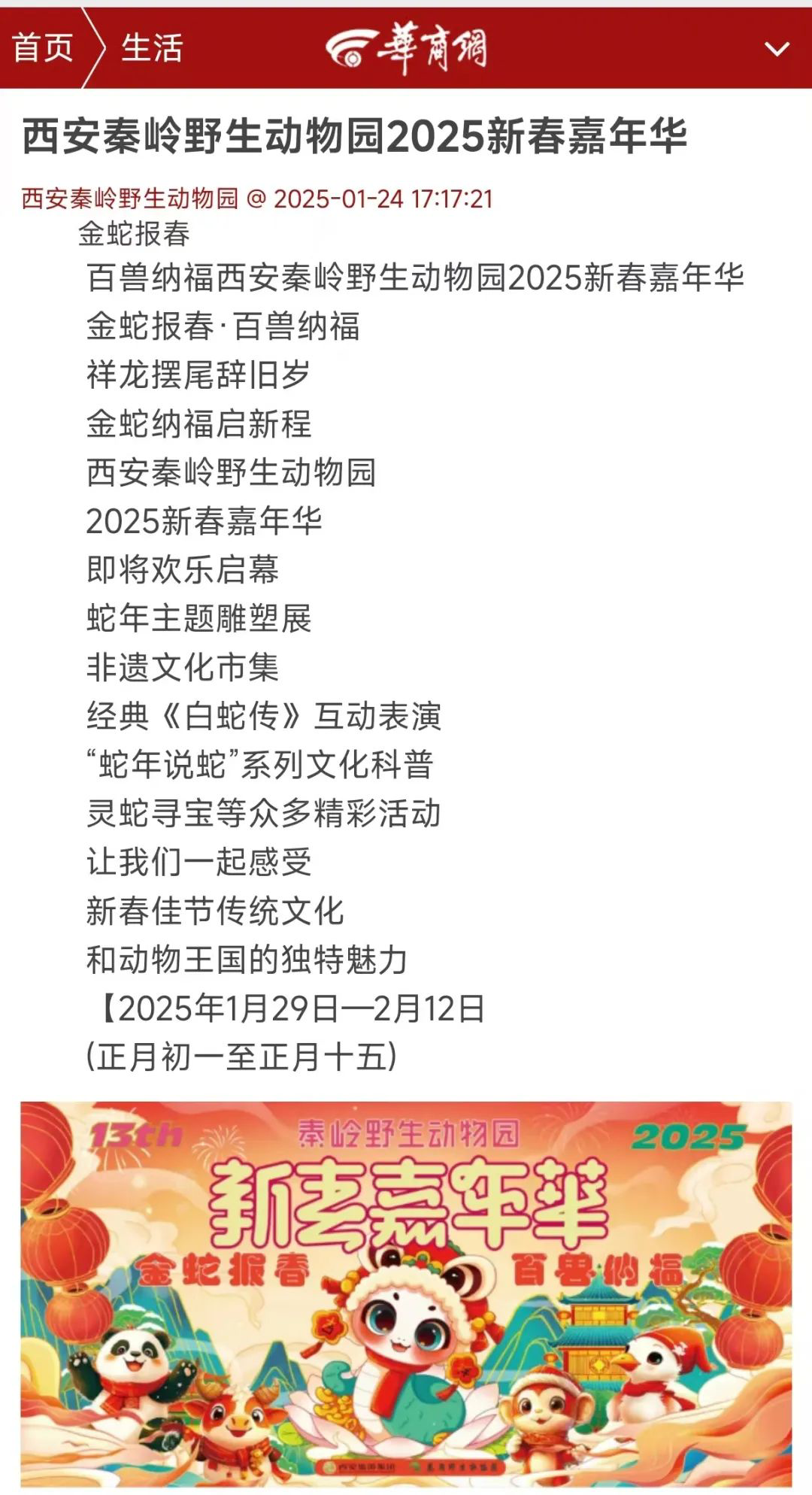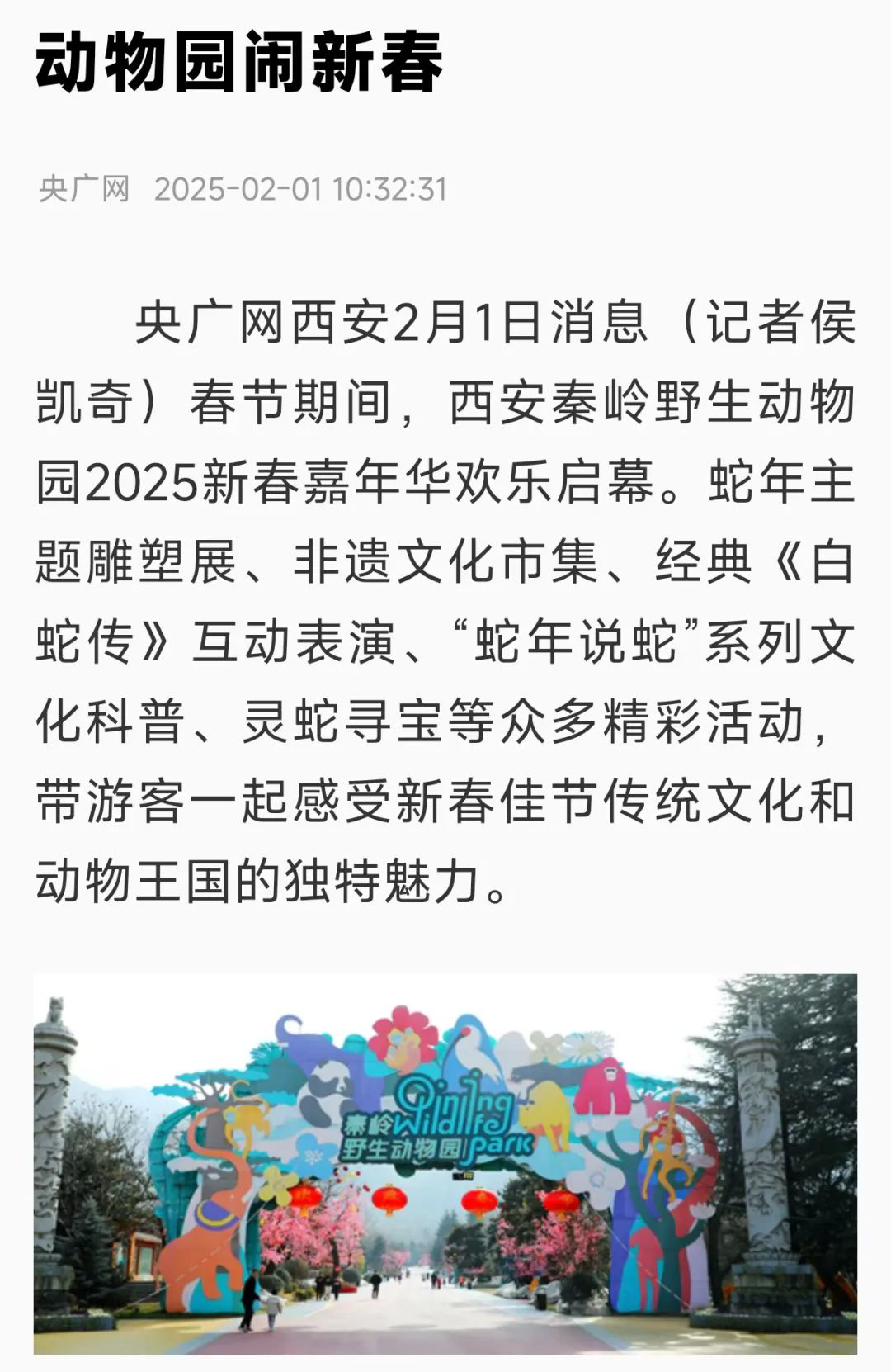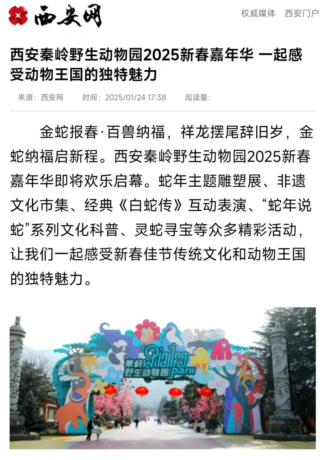 2025年春節(jié)假期,西安秦嶺野生動(dòng)物園以“金蛇報(bào)春·百獸納?!睘橹黝}的第十三屆新春嘉年華活動(dòng),吸引了眾多游客來園游玩。