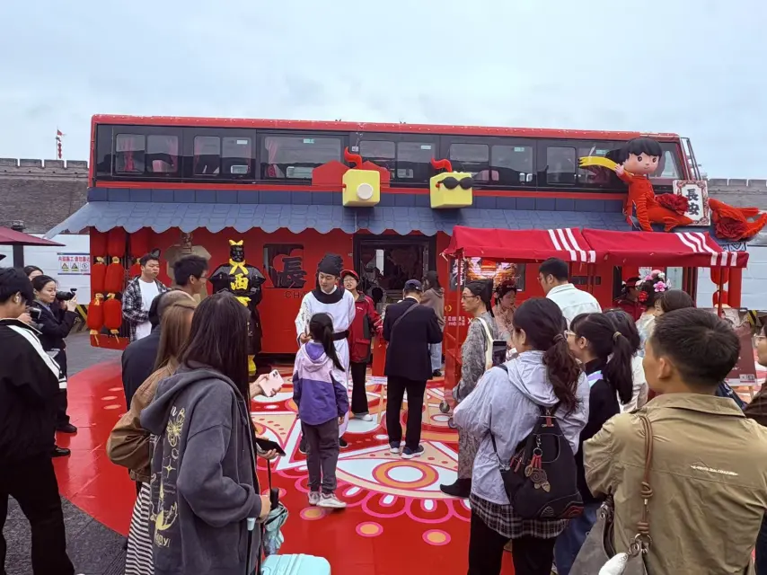 在觀光車上,身著唐裝的NPC與游客互動對詩、飛花令,再現(xiàn)大唐文風鼎盛的場景?!翱炜?,‘李白’來啦!”一位游客驚喜地喊道。“李白”造型的工作人員,手持古扇,與游客即興對詩、接龍賦詩,優(yōu)勝者不僅成為現(xiàn)場“詩詞達人”,還能收獲額外驚喜獎勵。“沒想到對詩這么好玩兒!”一位游客在成功對詩后興奮地說,“這次西安旅游,讓我收獲了一段有溫度、有故事的城市記憶?!?/p>