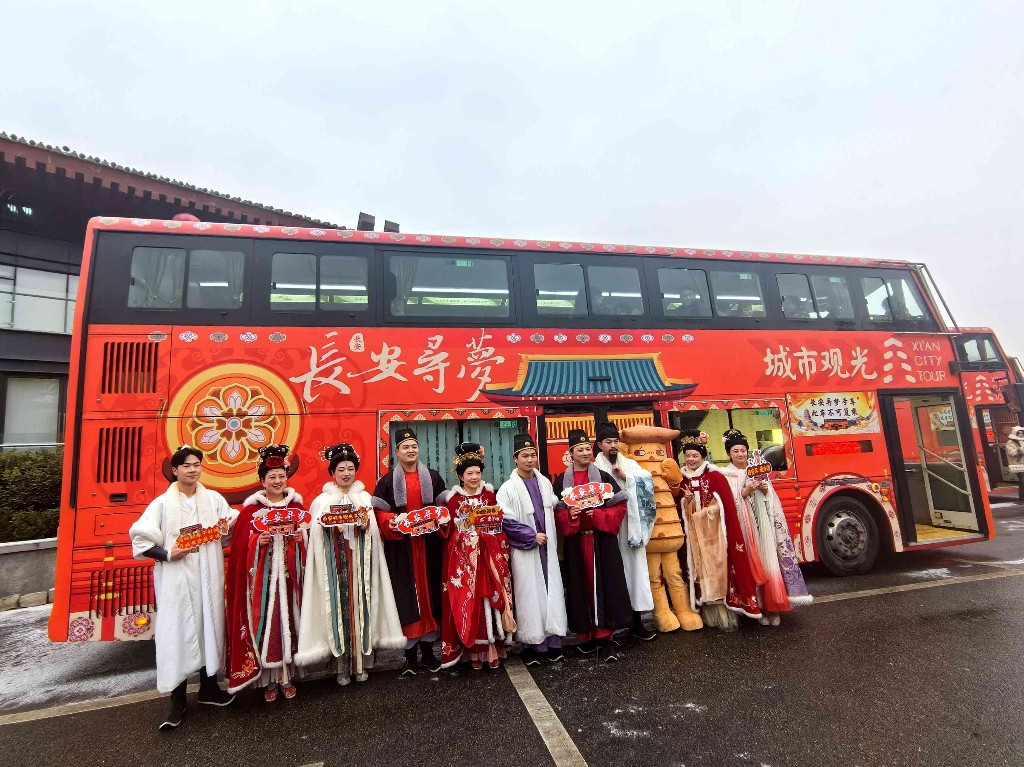 2月2日是中國傳統(tǒng)的小年,由西安城市觀光車主辦的長安尋夢 我?guī)闳ヌ瞥咝麓褐黝}車開通儀式,在西安市民游客服務(wù)中心大雁塔景區(qū)拉開帷幕。