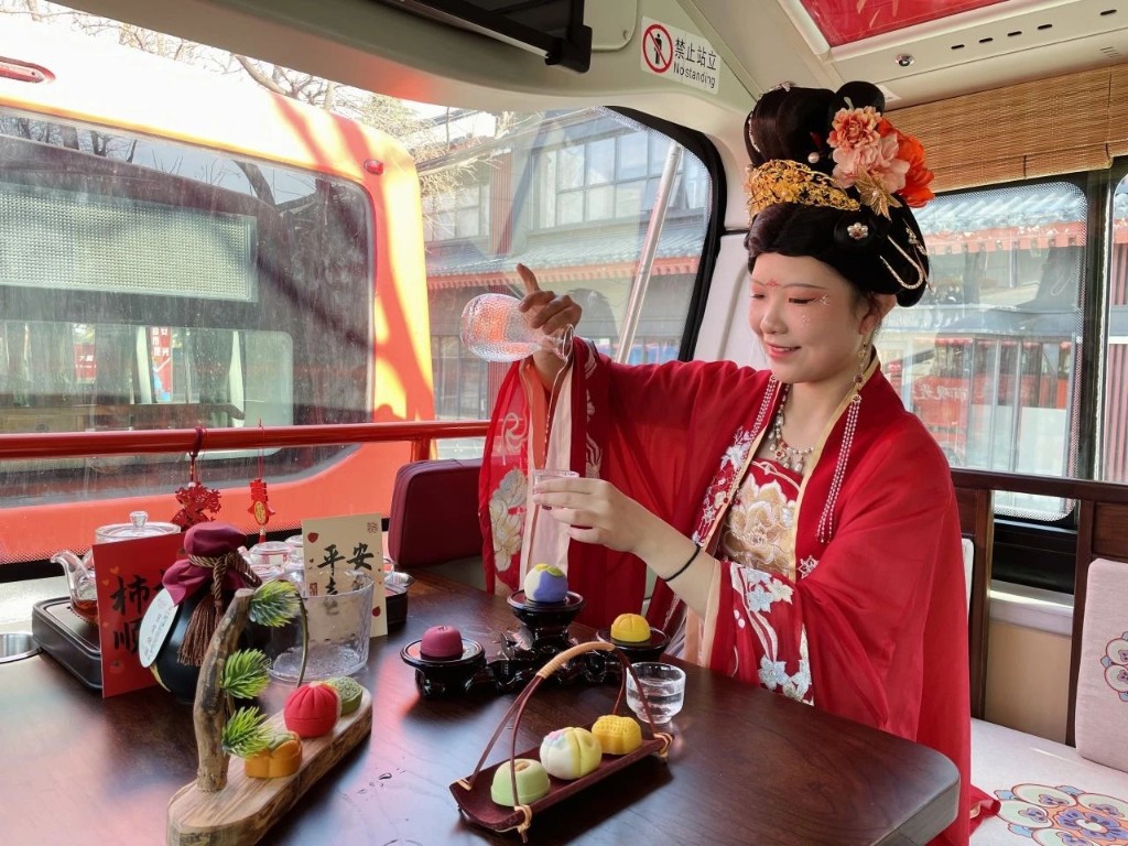 中國年最西安,潮西安新玩法,“乘巴士、觀秦風(fēng)、習(xí)漢學(xué)、品唐韻”慢享西安古城魅力,快來乘坐“西安城市觀光車”感受一場穿越之旅吧。