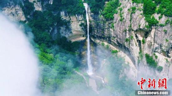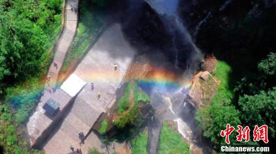 近日,隨著氣溫回升,位于秦嶺腹地的陜西太平國家森林公園內(nèi),漫山遍野的紫荊花盛開,與“彩虹飛瀑”相映成趣,吸引了不少游人前來賞花踏春。圖為俯瞰秦嶺腹地春景如畫。