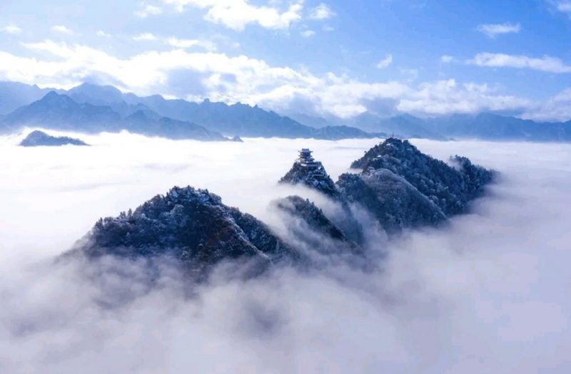 隨著今年首場(chǎng)大雪降落,南五臺(tái)再現(xiàn)如夢(mèng)似幻的云海奇觀。雪霽天晴,山頂?shù)姆e雪在陽(yáng)光下,閃爍著細(xì)碎的光芒,宛如鉆石般耀眼。當(dāng)冰雪世界遇上云海奇觀。如同展開了一幅流動(dòng)的畫卷。云海在山谷間翻騰涌動(dòng),讓山峰若隱若現(xiàn),巍巍壯麗。