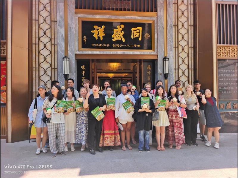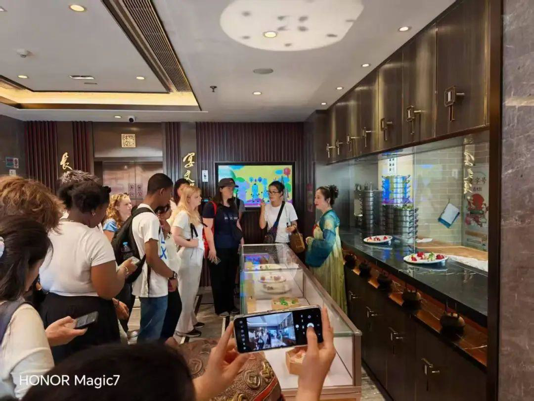 文明的深度對話,同樣在西安街頭巷尾升騰的煙火氣中熱烈展開。訪學(xué)團(tuán)走進(jìn)西安飯莊、德發(fā)長餃子館、同盛祥、清雅齋、西安烤鴨店等承載著城市記憶的中華老字號。在非遺大師的引導(dǎo)下,青年學(xué)子們親手掰開一塊塊坨坨饃,感受饃粒大小對湯汁吸收的微妙影響;嘗試捏出形態(tài)各異的花樣餃子,體驗(yàn)指尖上的匠心……這不僅是味蕾的盛宴,更是理解西安生活美學(xué)、感悟中華飲食“食不厭精,膾不厭細(xì)”智慧的獨(dú)特課堂。
