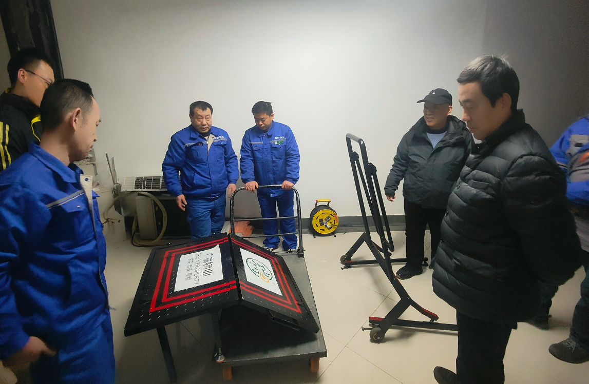 在廣瑞物業(yè)勝利項目部觀看了“方形井蓋提升器”“樓梯踏步作業(yè)平臺”職工創(chuàng)新成果,聽取了兩個成果的設(shè)計原理、應用場景。