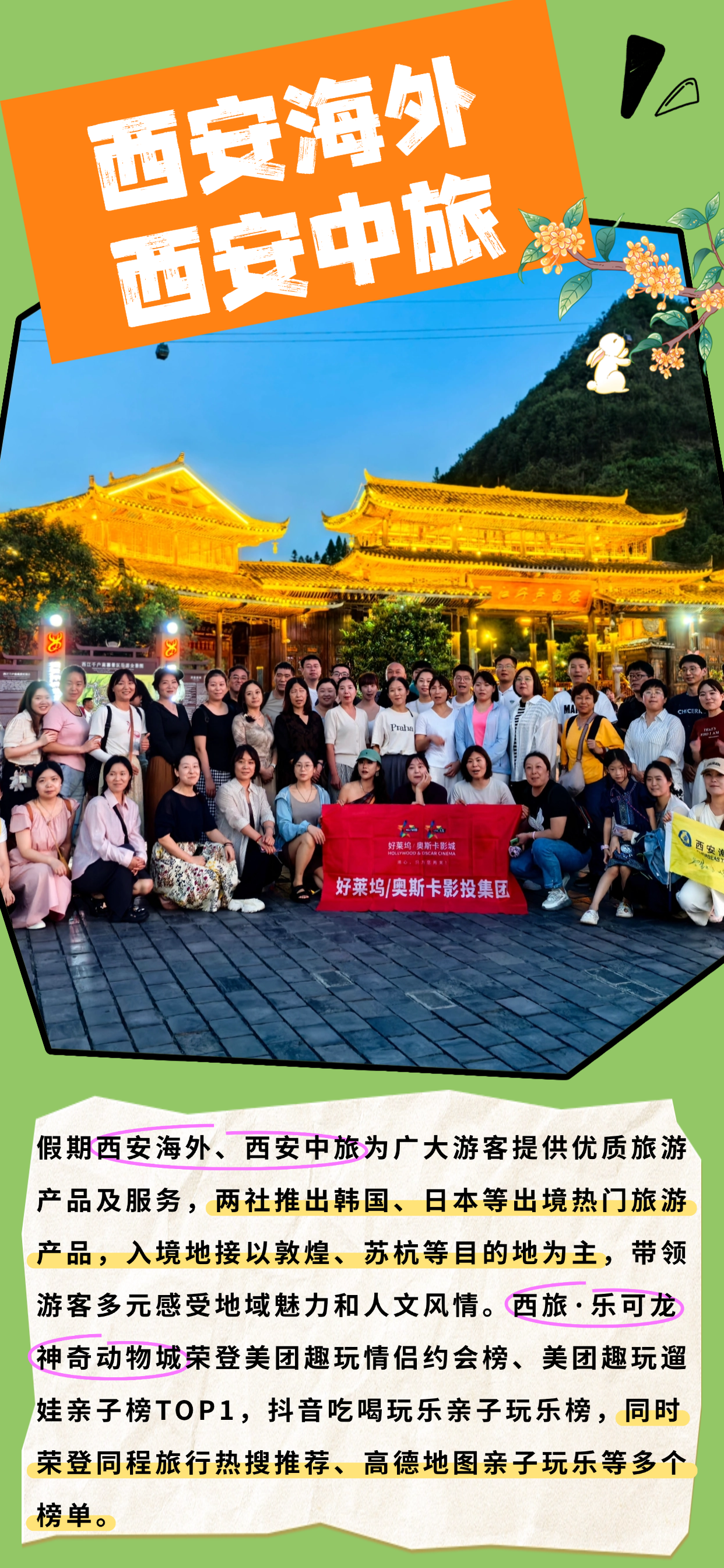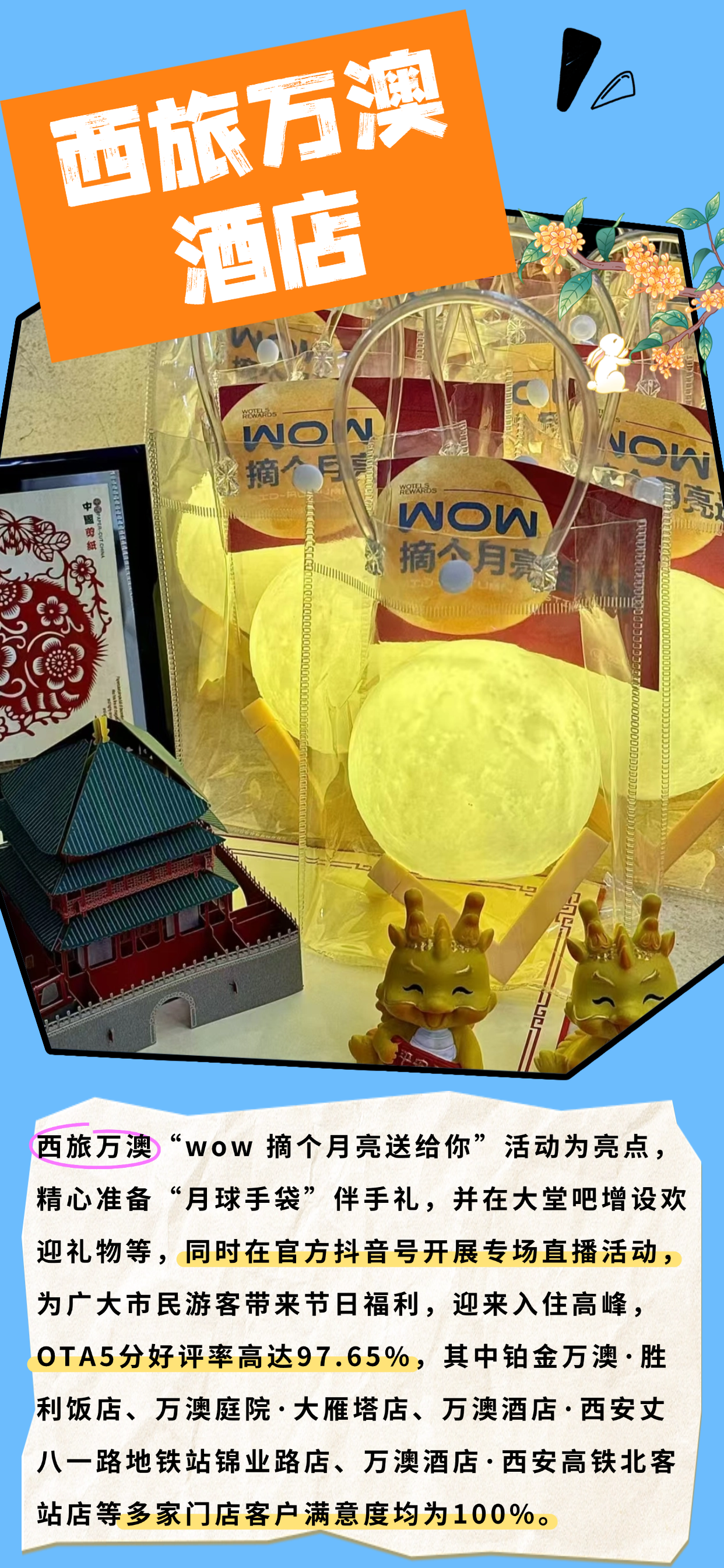 明月華彩映西旅,四海賓朋聚長安。今日中秋,月滿人間,清輝灑落古城,詩意與情思交織,西安再度成為令人向往的熱門旅游地,耀古城風(fēng)情、嘗佳節(jié)美味、游錦繡山水、感國風(fēng)魅力。西旅集團(tuán)旗下景區(qū)、餐飲、酒店、旅行社、汽車等板塊緊扣中秋主題,精心謀劃,吸引眾多游客紛至沓來,共同度過了一個溫馨浪漫、充滿詩意的中秋假期。