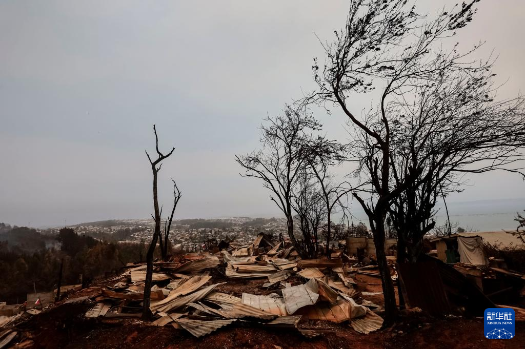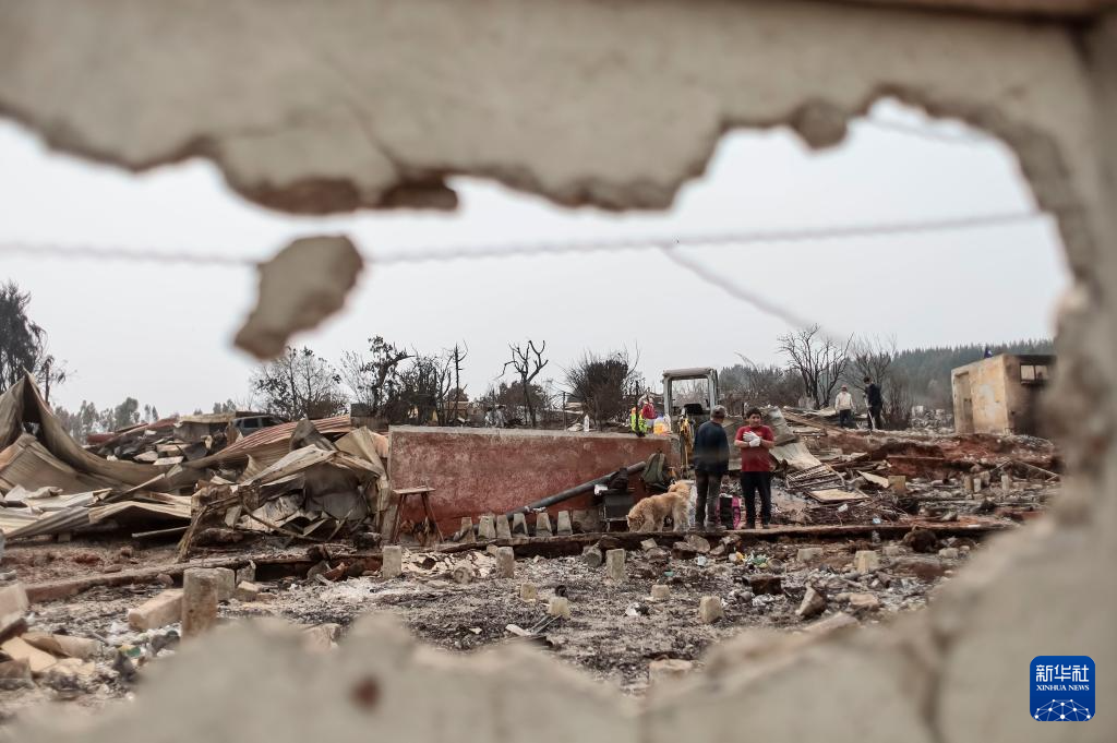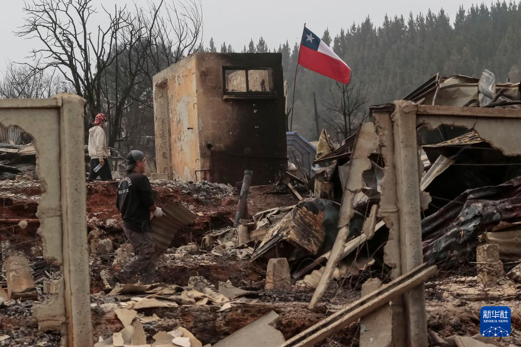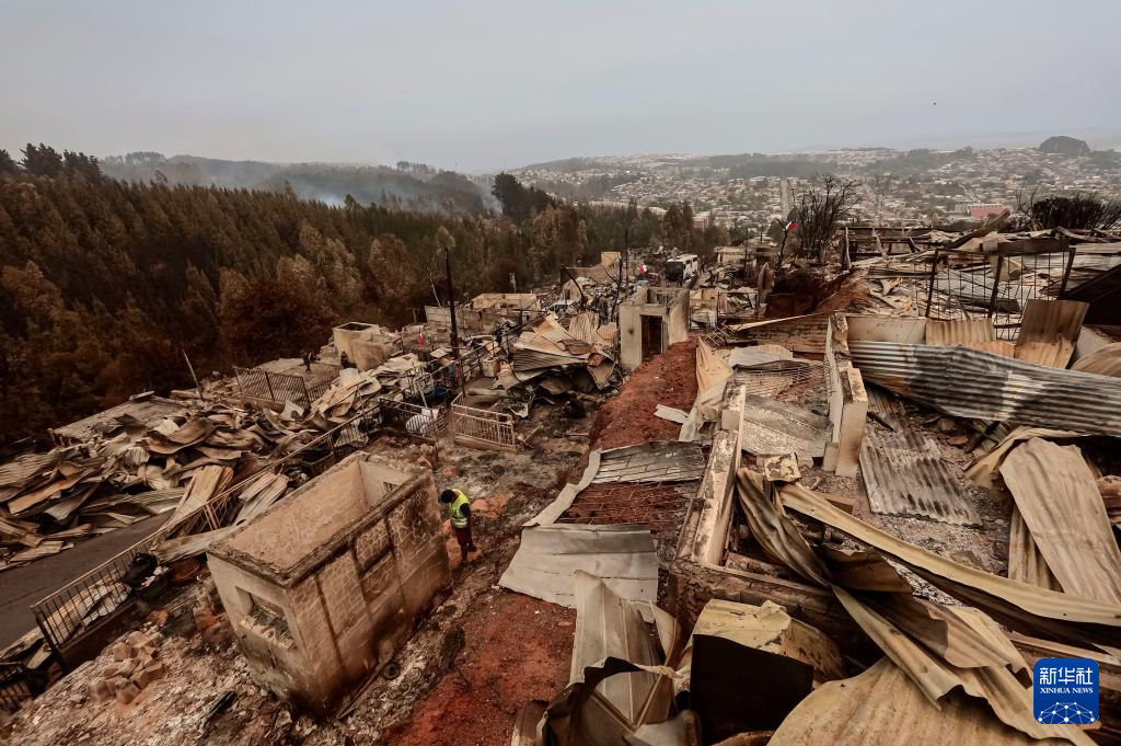 這是1月19日在智利比奧比奧大區(qū)彭科市拍攝的火災(zāi)受災(zāi)區(qū)域。